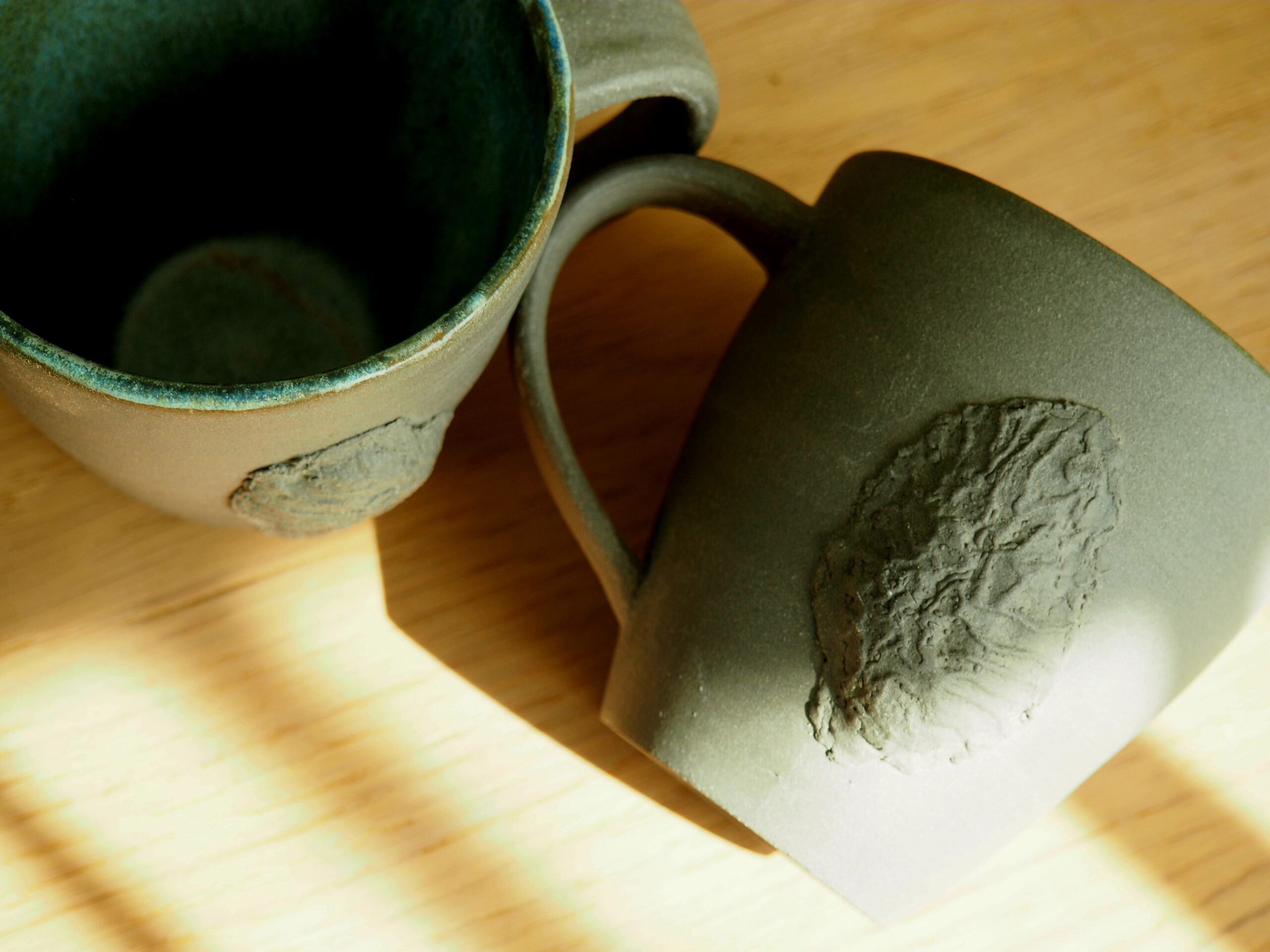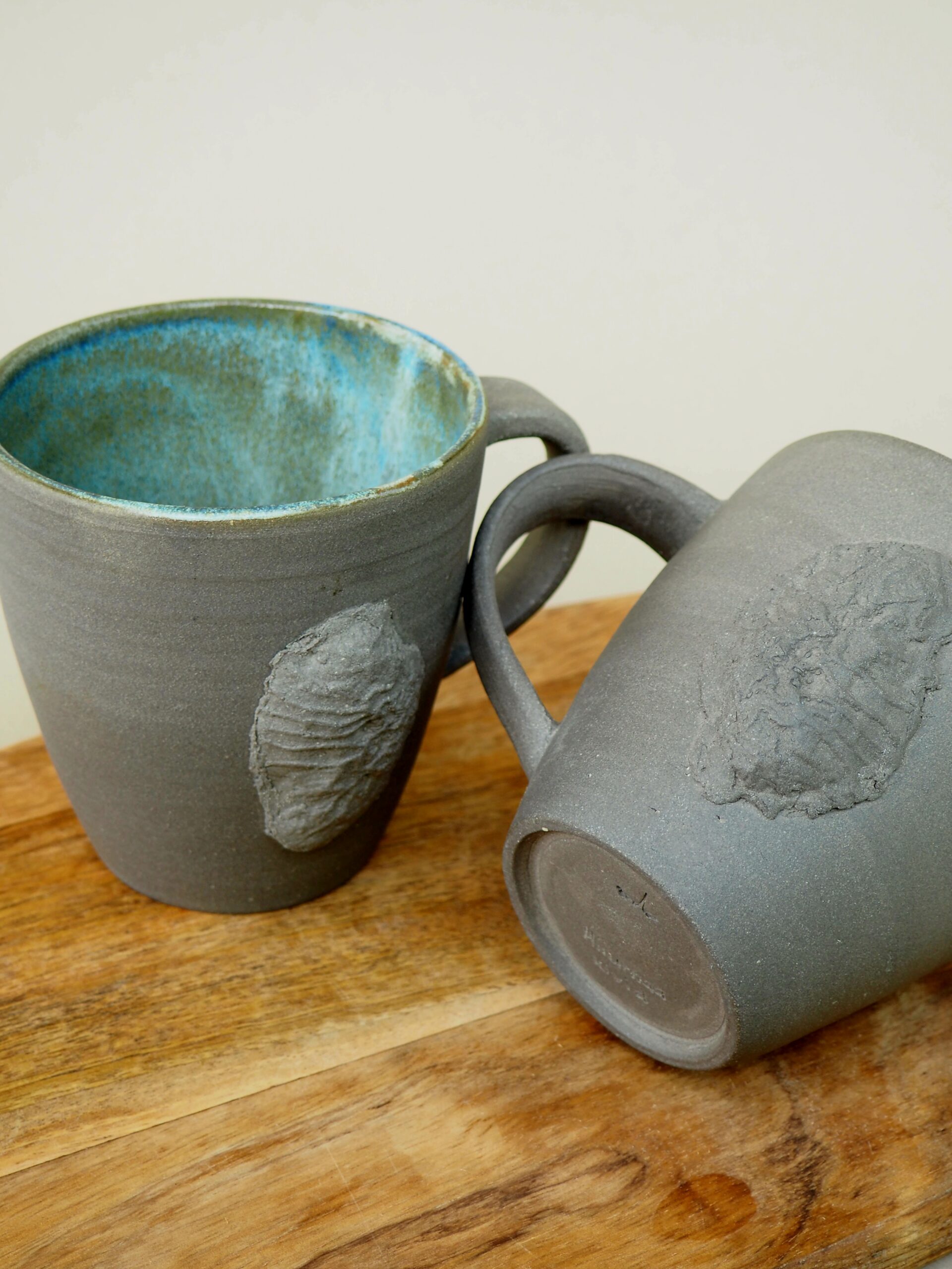 Hallist kõrgkuumussavist ning Hiiumaa randade kivistisega. Väline pind glasuurimata. Sees mere tooni glasuur.